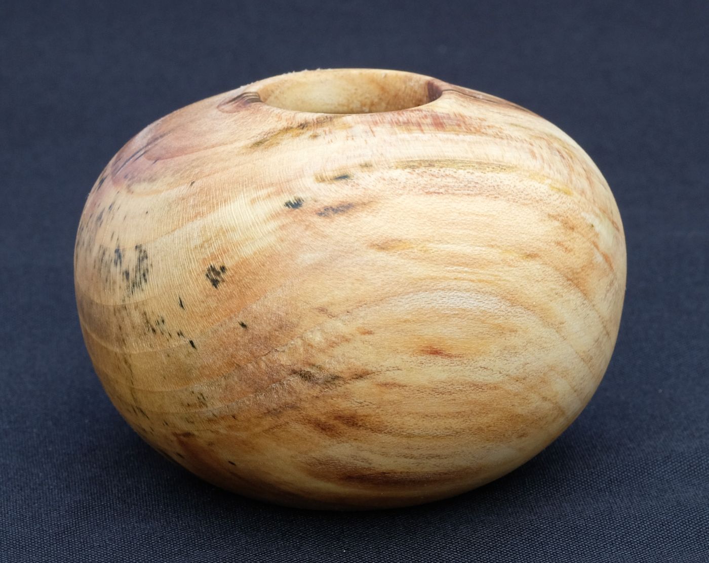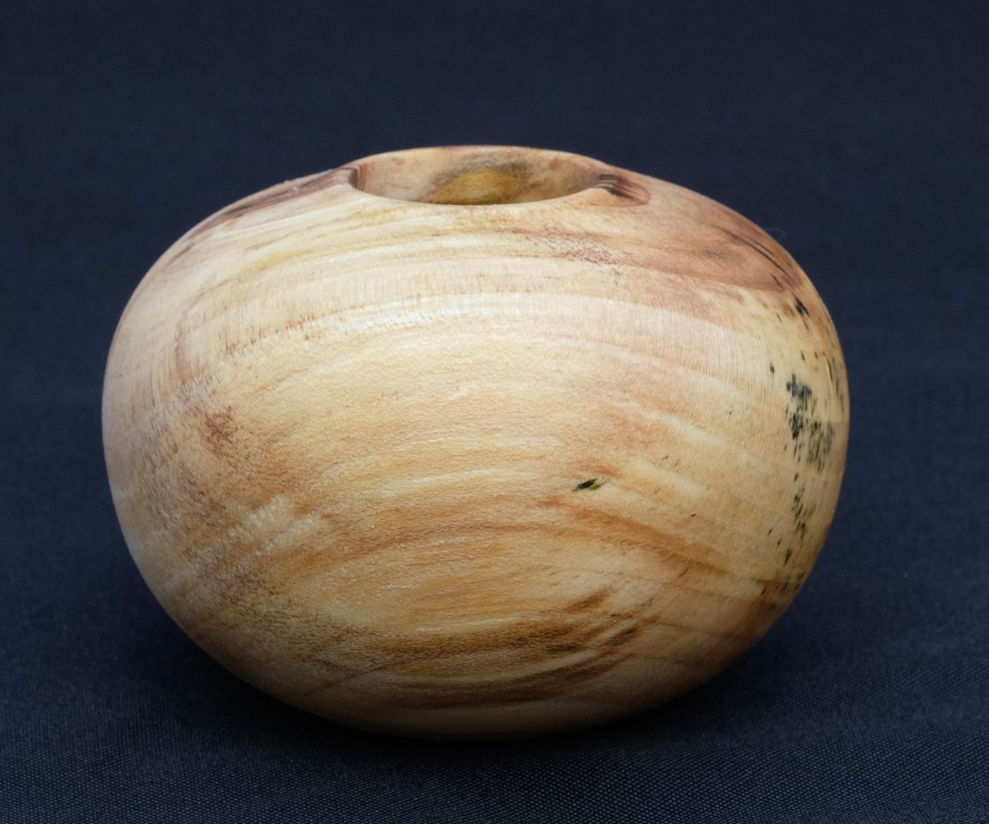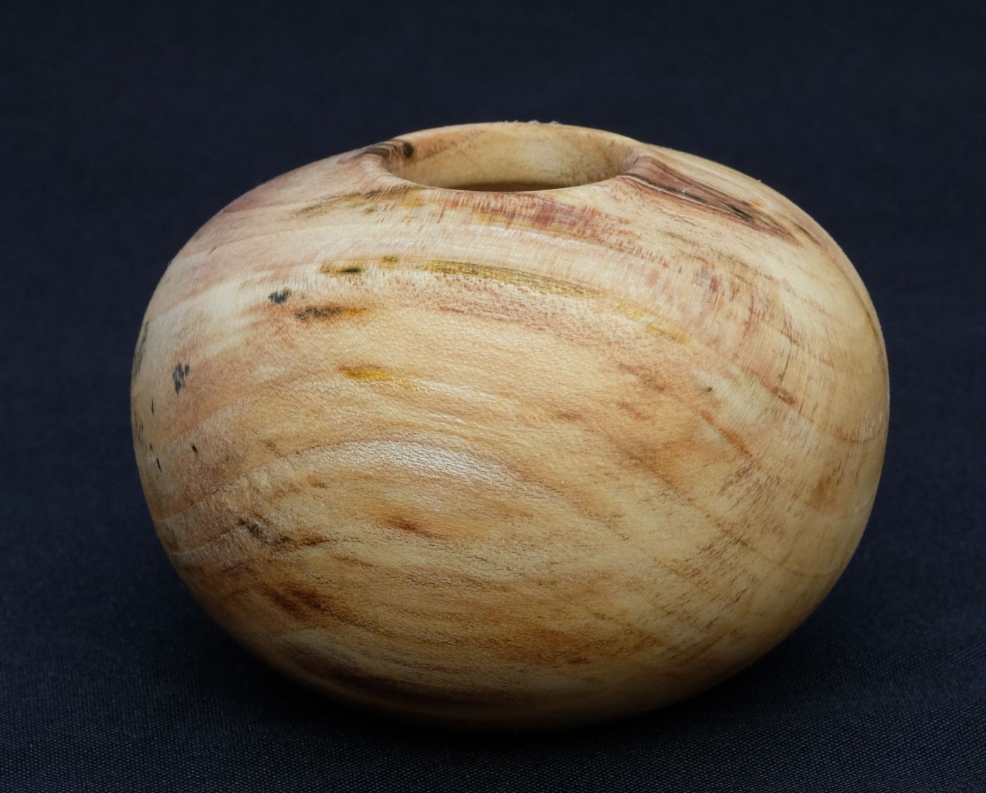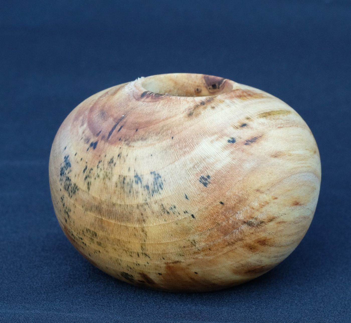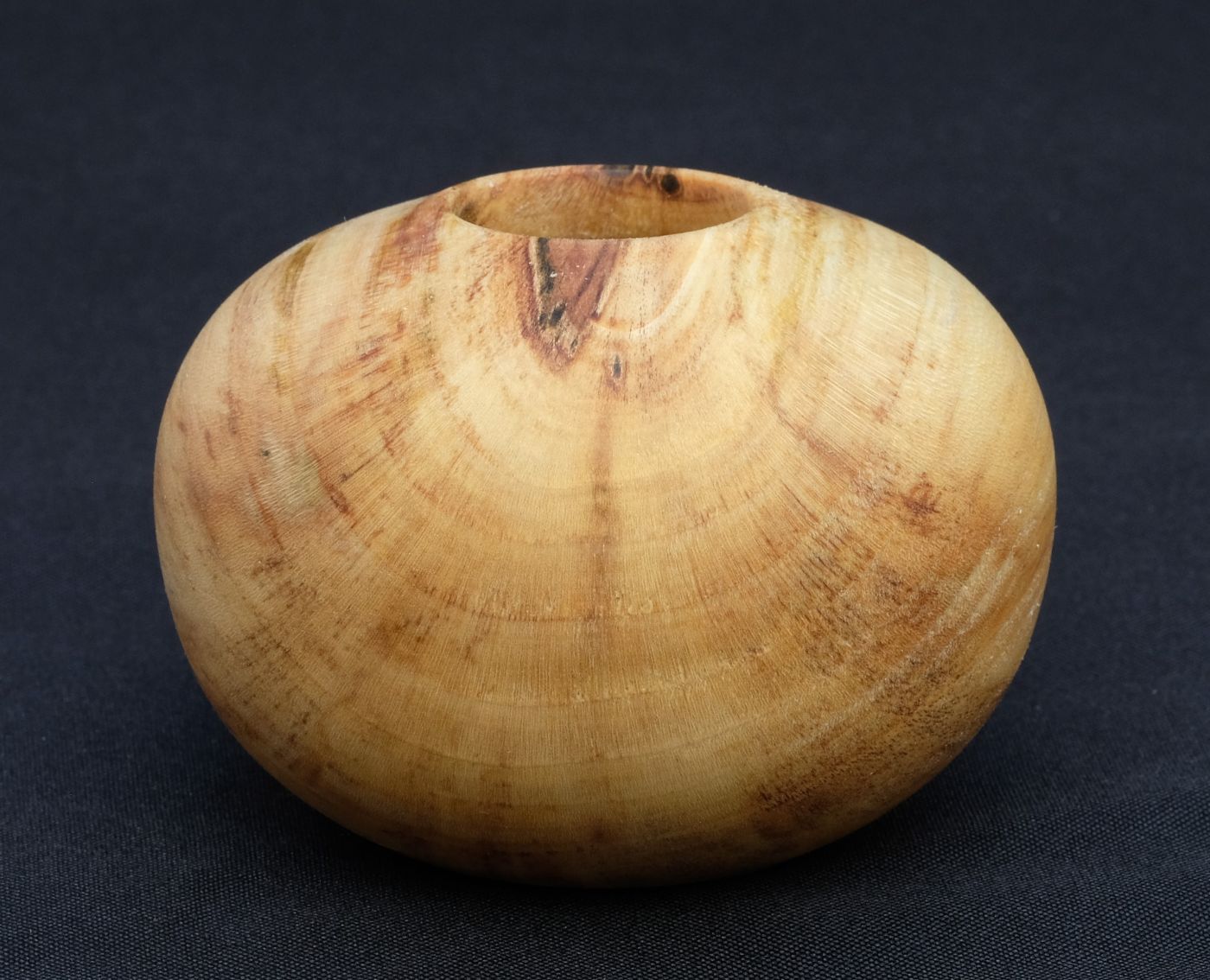 Kleiner Ballon aus stark verfärbtem Ahorn. Holz mit Brauneverfärnung und grünen Sprenkeln. Sehr kleine Öffnung, zarter Rand mit Herz.
